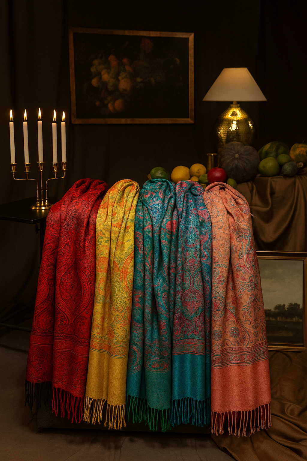 Indulge in the plush embrace of our vivid pashmina shawls, where every thread tells a story of luxury and craftsmanship.